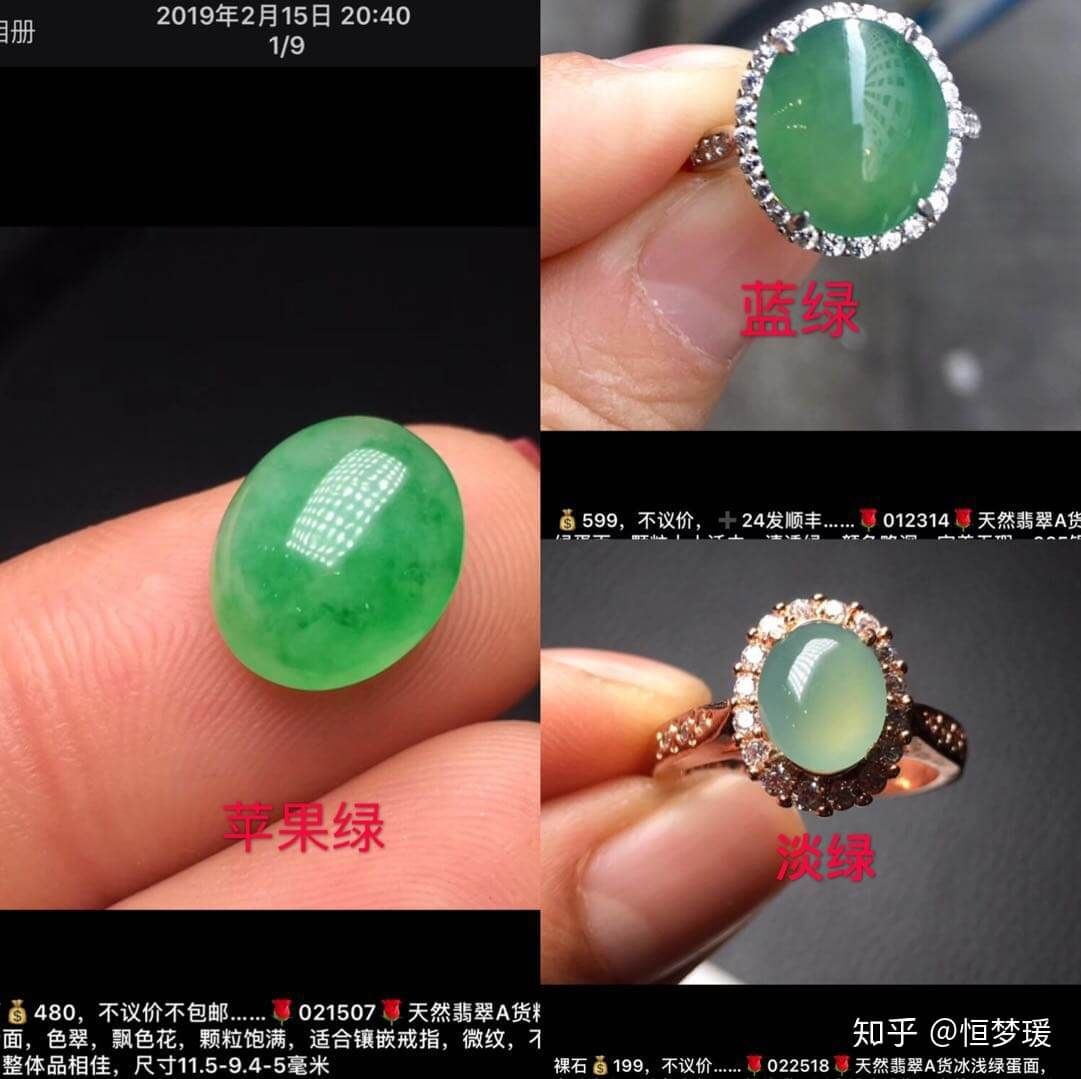 下面说下看色,俗话说色差一点,价差十倍,说的就是翡翠,颜色当中阳绿、帝王绿最值钱,简单说就是越是妖艳越是贵,淡绿、苹果绿、蓝绿、菠菜绿、通常都不贵,普通人即可拥有,放大看下图